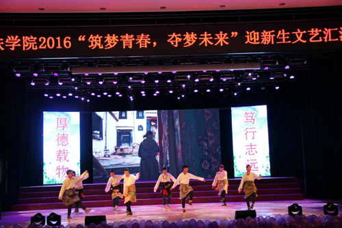 由藏族学生带来的民族舞蹈《吉祥如意》,展现藏族风情
