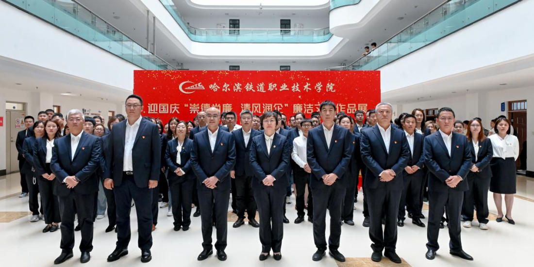 为深入贯彻落实中央纪委四次全会精神,巩固拓展党纪学习教育成果,推动中央八项规定精神深入人心、落实于行,9月29日,学院党委、纪委举办的“迎国庆‘崇德尚廉 清风润企’廉洁文化作品展”揭幕仪式在学院综合楼一楼大厅隆重举行。学院领导班子成员,中层正副职干部,各党总支、党支部支委,统战人士代表,学生入党积极分子代表,团员代表等共百余人出席了揭幕式。本次活动由党委副书记、纪委书记、工会主席莫应胜主持。学院领导班子成员共同为“迎国庆‘崇德尚廉 清风润企’廉洁文化作品展”活动揭幕并合影留念,随后大家一同移步,欣赏参展的师生作品。