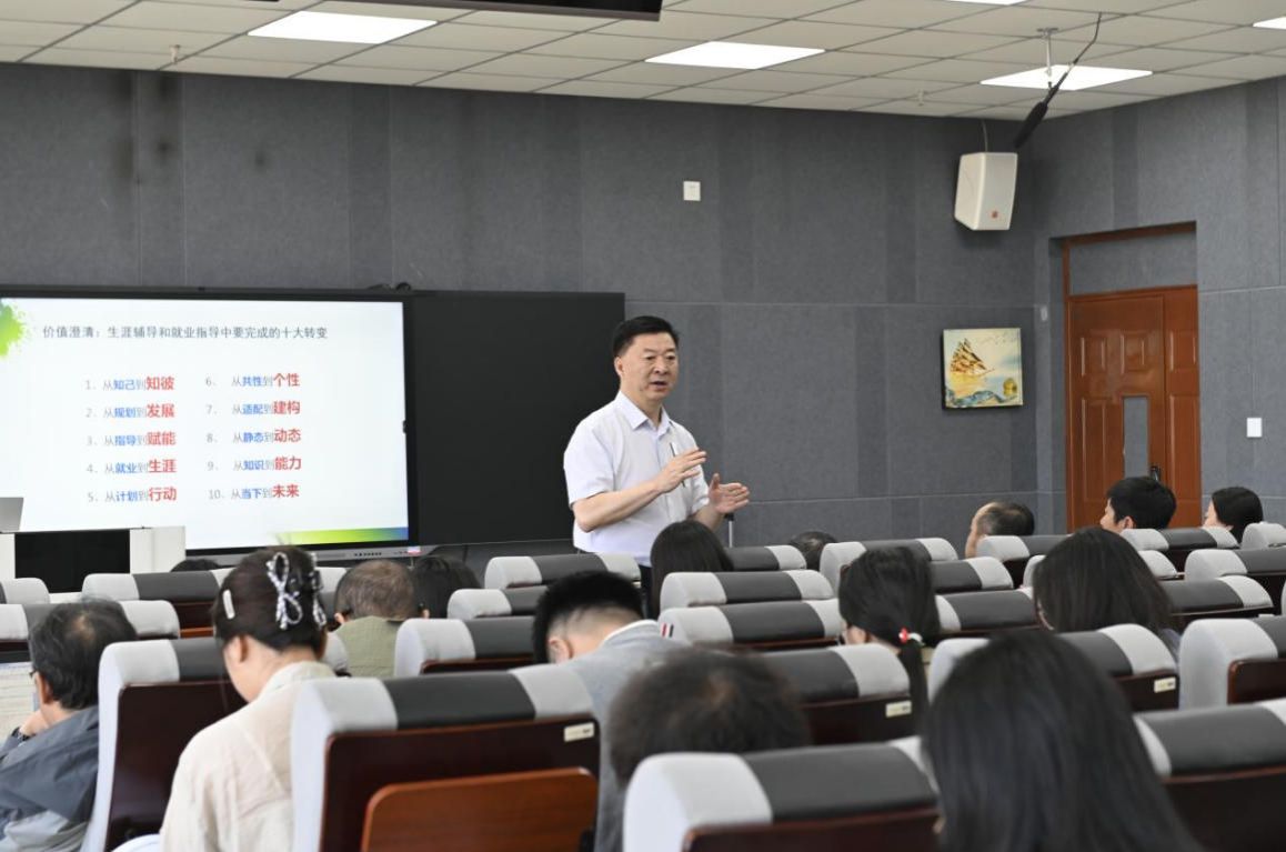 9月30日,郭勇教授以“新形势・新攻略”为主题展开授课,深入解读全国大学生职业规划大赛的备赛要点。他从赛制流程、赛道变化、评审标准、作品打磨等多个维度进行细致讲解,为教师指导学生备赛提供清晰思路。郭勇强调,新时代生涯教育需开创具有中国特色的“本土化、本地化、本校化、本院化”全新模式,将生涯教育与学院专业特色、行业发展需求紧密结合,提升课程的针对性与实用性。
