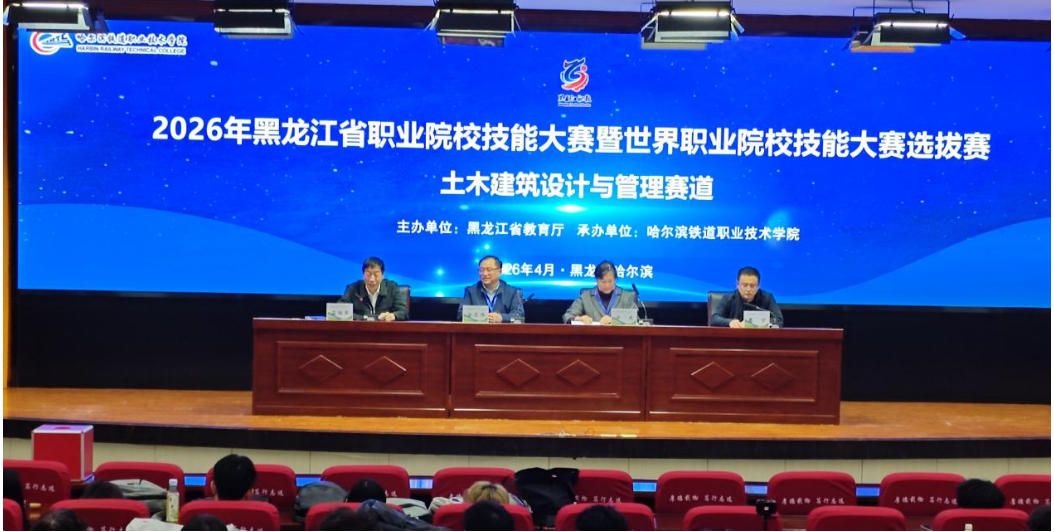 4月17日-18日,由黑龙江省教育厅主办、我院承办的2026年黑龙江省职业院校技能大赛暨世界职业院校技能大赛选拔赛土木建筑设计与管理赛道比赛顺利举办。本次赛事吸引全省14所高职院校的优秀选手同台竞技、切磋技艺,集中展现了我省土木建筑类专业学子扎实的专业功底、精湛的实操能力与优良的职业精神风貌。