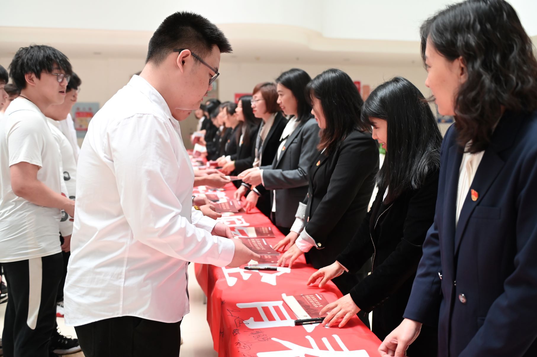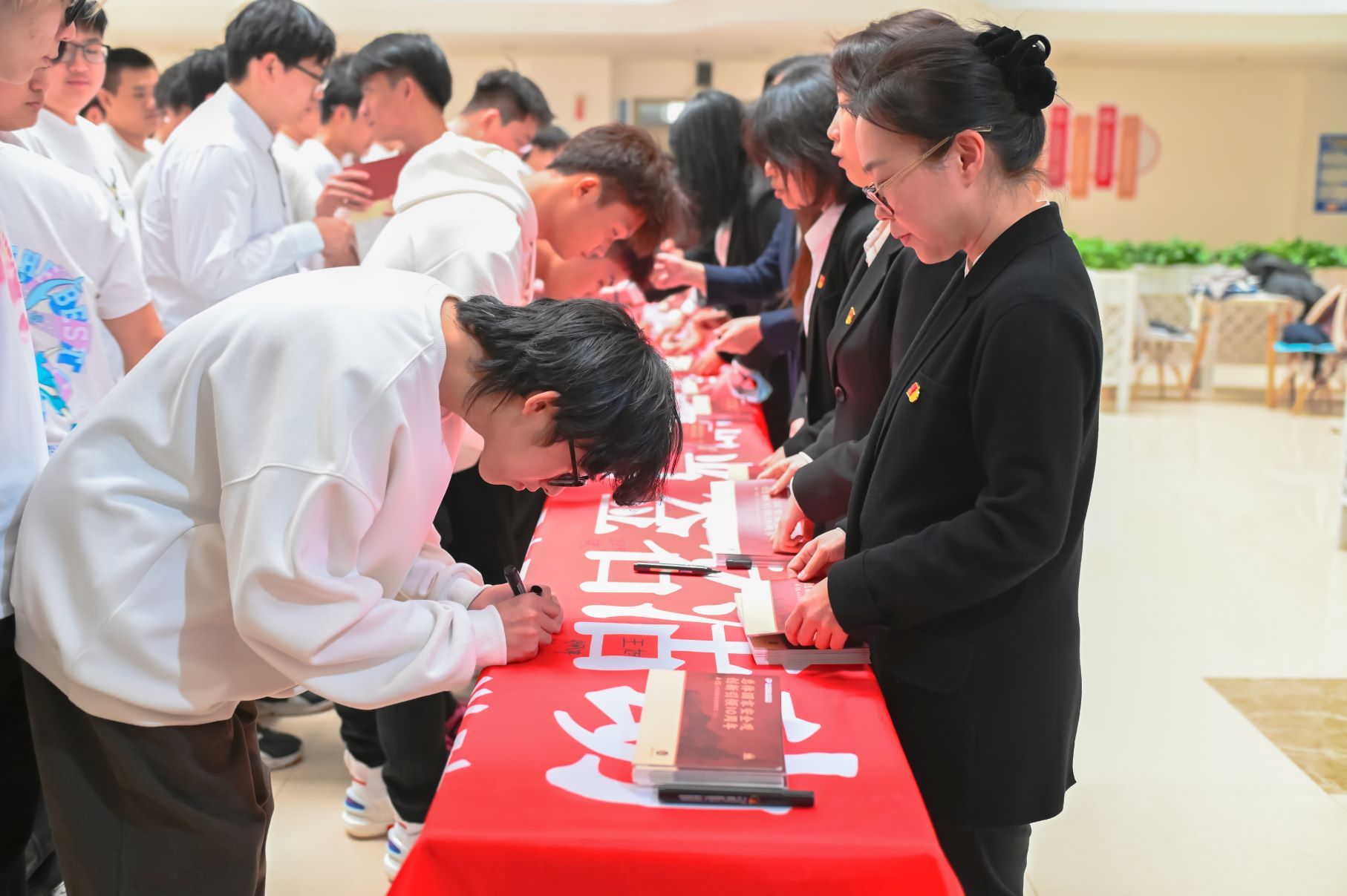 第三个环节,组织学生开展现场签名活动,同学们纷纷在条幅上写下自己的名字,表达出他们愿做国家利益的捍卫者、国家安全的守护人的坚定信念。参加活动的同学们纷纷表示,今后将牢固树立“国家安全人人有责”的思想认识,自觉加强对国家安全法律知识的学习,做好国家安全举报电话“12339”的宣传,以实际行动宣传好、维护好国家安全。