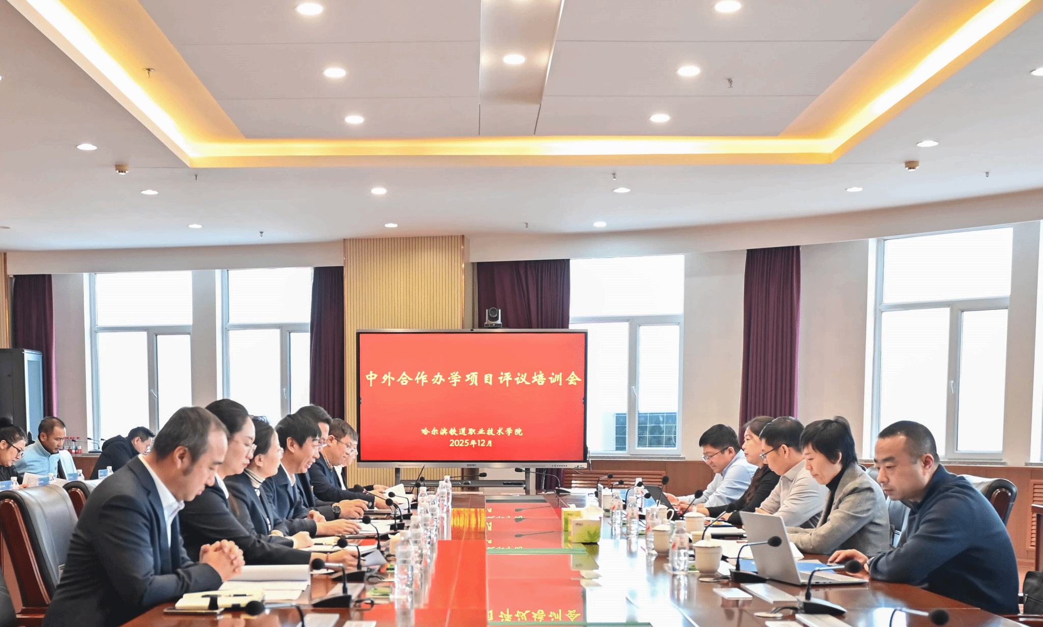 12月18日,黑龙江省中外合作办学项目评议培训会在学院顺利召开。省教育厅对外合作与交流处处长王少松、哈尔滨工业大学国际合作部外事处副处长吴昊等合作办学评审专家及省内8所高校的相关人员参加会议,学院院长孟维军出席会议并讲话。