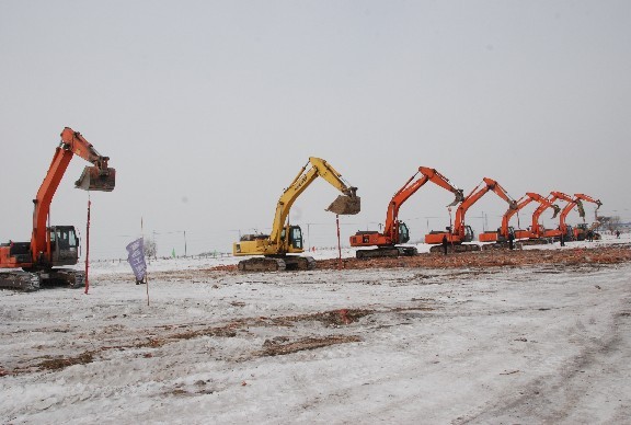 (哈铁学院消息)2013年3月12日上午10时18分,新校区施工现场机械轰鸣,53000平方米教学楼工程开挖冻土正式动工。建设单位哈尔滨铁道职业技术学院副院长郦洪晨、总务处长王果隆及有关工作人员、施工单位黑龙江省建工集团有限责任公司项目指挥长、总经理助理刘军龙、开发部总经理许广威、副总经理林峰、项目经理胡小江,监理单位华铁工程咨询有限责任公司项目总监余国荣、副总监韩录昌等同志到现场参加了动工仪式。
