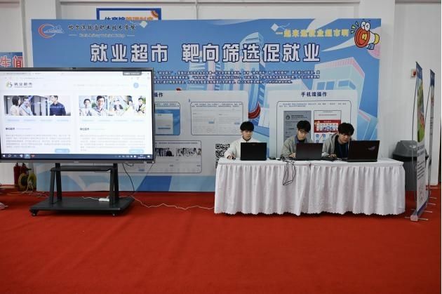 会场精心设置了“就业超市”“AI求职加油站”以及“就业政策咨询服务区”三大功能板块。各用人单位现场进行宣讲、接收简历并组织初试;政策咨询区特邀哈尔滨市人力资源和社会保障局、平房区人力资源和社会保障局以及平房区武装部专家驻场,为毕业生详细解读留省就业、安家落户、人才补贴、征兵入伍等优惠政策。