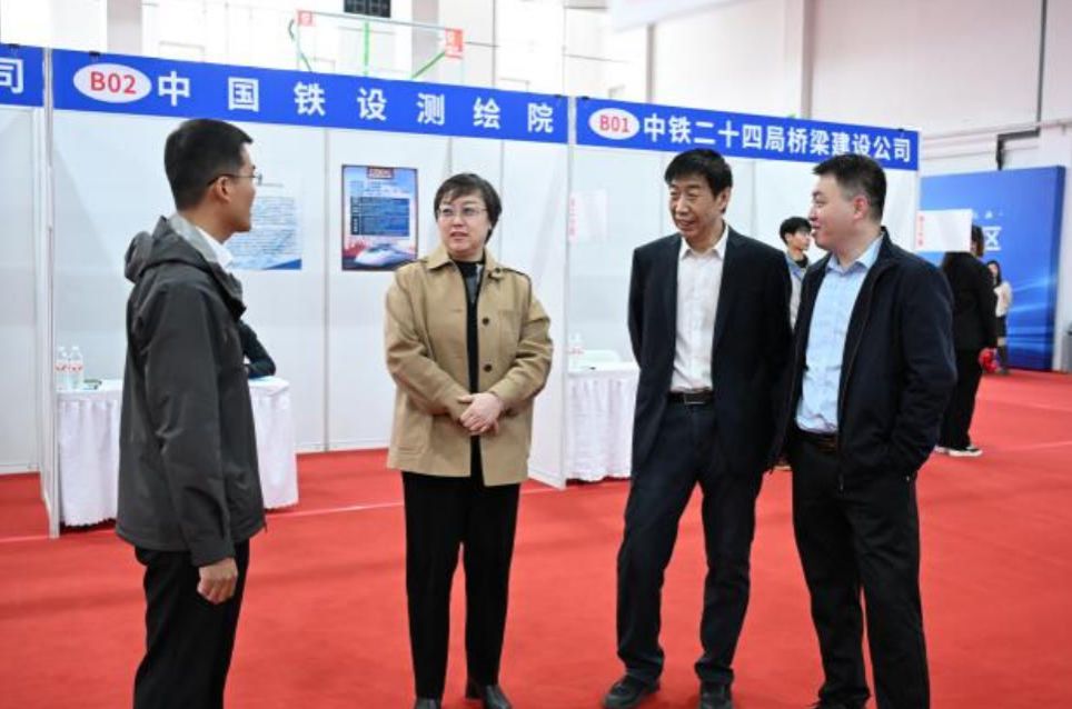 春风载梦轨声近,站启新程聚英才。4月16日至17日,学院2026届毕业生春季大型双选会暨2027届毕业生实习推介会在体育馆隆重举行。本次双选会紧密围绕服务国家铁路行业战略、促进龙江全面振兴、助推区域经济发展等核心任务,通过创新“精准对接+数智赋能”服务模式,深化产教融合与校企协同,旨在为毕业生与用人单位搭建一个高效、便捷、高质量的就业双向选择平台。